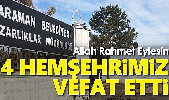 Vefat Eden Vatandaşlarımızın Bilgileri Şu Şekilde:Aslen KARAMANLI olup YUNUS EMRE MAHALLESİNDE ikamet etmekte olan ALİ KORAŞ (75) vefat etmiştir. Cenazesi 19 Temmuz Salı GÜNÜ İKİNDİ namazına müteakip MUSALLADAN kaldırılacaktır.Aslen GÜÇLER KÖYÜNDEN olup OSMANGAZİ MAHALLESİNDE ikamet etmekte olan ALİ İLBAN (61) vefat etmiştir. Cenazesi 19 Temmuz Salı GÜNÜ İKİNDİ namazına müteakip MUSALLADAN kaldırılacaktır.Aslen GÖDET KÖYÜNDEN olup YURTDIŞINDA ikamet etmekte olan KATİBE AKDAĞ (81) vefat etmiştir. Cenazesi 19 Temmuz Salı GÜNÜ ÖĞLE namazına müteakip MUSALLADAN kaldırıldı.Aslen BUCAKKIŞLA KÖYÜNDEN olup KARAMANOĞLU MEHMET BEY MAHALLESİNDE ikamet etmekte olan ALİ TUNÇ (46) vefat etmiştir. Cenazesi 19 Temmuz Salı GÜNÜ ÖĞLE namazına müteakip MUSALLADAN kaldırıldı.Haberant.com Olarak Merhumlara Allah'tan Rahmet Yakınlarına Başsağlığı dileriz