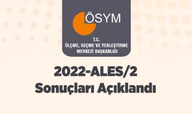 Ölçme, Seçme ve Yerleştirme Merkezi (ÖSYM) tarafından yapılan duyuruyla birlikte bu yılın ikinci ALES sınavı açıklandı.Adaylar, sınav sonuçlarına ÖSYM'nin https://sonuc.osym.gov.tr internet adresinden T.C. Kimlik Numaraları ve aday şifreleri ile erişebilecek.