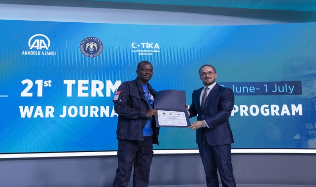 Anadolu Ajansı (AA), Polis Akademisi ve Türk İşbirliği ve Koordinasyon Ajansı (TİKA) Başkanlığı iş birliğinde düzenlenen "21. Dönem Savaş Muhabirliği Eğitimi"ne katılan 14'ü yabancı uyruklu 22 medya mensubuna sertifikaları verildi. Savaş, afet ve olağanüstü hallerde görev alacak operasyonel muhabirlerin yetiştirilmesi amacıyla 20 Haziran-1 Temmuz arasında düzenlenen "21. Dönem Savaş Muhabirliği Eğitimi"nin sertifika töreni, Anadolu Ajansı Genel Müdürlüğünde yapıldı.AAtölye'deki törende bir konuşma yapan AA Proje Yönetim Koordinatörü Oğuz Karakaş, son yıllarda dünyada savaş ve çatışmaların arttığına işaret ederek, bunların küreselleşmenin sonucu olarak Türkiye'yi de etkilediğini söyledi.Karakaş, gazetecilerin savaş ve çatışmalardan en çok etkilenen gruplar arasında yer aldığını, işlerini yapmak için zor koşullar artında çalıştığını, yakalanma, saldırıya uğrama ve hatta öldürülme tehlikesiyle karşı karşıya kaldıklarını anlattı.