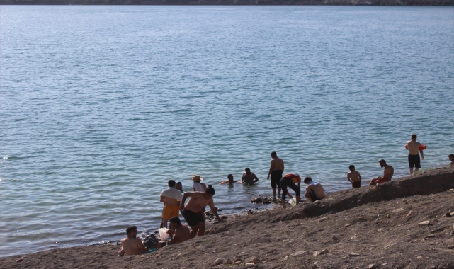 Göle yakın il ve ilçelerden gelen çok sayıda ziyaretçi, sıcak havada gölün soğuk sularında önce yüzüp, ardından piknik yapıp, mangal yaktı.