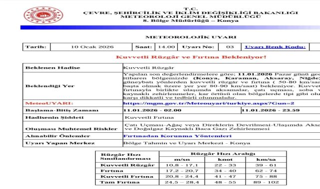AFAD Karaman, sosyal medya üzerinden yaptığı bildirimle bölge halkını etkileyecek güncel bir meteorolojik uyarıyı paylaştı. Vatandaşların uyarı işaretleriyle dikkat çekilen bu duyuruya karşı tedbirli olması istendi.