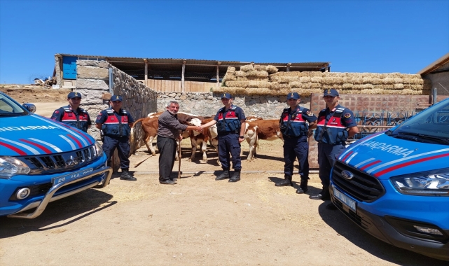 Aksaray'da bir ahırdan çalınan 8 büyükbaş, Şanlıurfa'da bulunarak sahibine teslim edildi.İl Jandarma Komutanlığı ekipleri, 2 Temmuz'da, merkeze bağlı Cankıllı köyünde Şerafettin Yen'in ahırından çalınan 8 büyükbaşın Şanlıurfa'da olduğunu tespit etti.İkamete operasyon düzenleyen ekipler, 8 büyükbaşı ele geçirdi.Aksaray'a getirilen hayvanlar Şerafettin Yen'e teslim edildi.Yen, gazetecilere, hayvanlarının bulunmasına çok sevindiğini söyledi.Jandarma ekiplerinin kendisine bayram öncesinde çifte mutluluk yaşattığını belirten Yen, hayvanlarının bulunmasında emeği geçen herkese teşekkür etti.- Olayİl Jandarma Komutanlığı ekipleri, 2 Temmuz'da, merkeze bağlı Cankıllı köyünde yaşayan Şerafettin Yen'in ahırından 8 büyükbaşın çalınmasıyla ilgili çalışma başlatmıştı. Şüphelilerin eşkalini belirleyen ekipler, bu kapsamda düzenlediği operasyonda Aksaray Sanayi Sitesi'nde kamyonlarını tamir ettiren şüpheliler Ramazan C. (39), Erol K. (22) ve Eren C'yi (22) yakalamıştı.Jandarmadaki işlemlerinin ardından adliyeye sevk edilen 3 zanlı, çıkarıldıkları nöbetçi sulh ceza hakimliğince tutuklanmıştı.