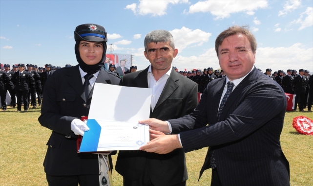 Dönem birincisi Kader İlhan'ın yaş kütüğüne plaket çakmasının ardından ilk beşe giren öğrencilere diplomaları ve hediyeleri verildi.Öğrenciler yemin ederek tören geçişi yaptı. Tören geçişini, İl Emniyet Müdürü Murat Kolcu, 15 Temmuz'daki darbe girişiminde şehit düşen Özel Harekat Daire Başkan Yardımcısı Önder Güzel'in annesi Gülşen ve eşi Yeşim Güzel ile ayakta takip etti.Tören sonunda öğrenciler kep atarak, mezuniyetlerini aileleriyle kutladı.Mezun polis adayı Melike Sancak, AA muhabirine, çok heyecanlı olduğunu, 7 ayın sonunda polis teşkilatına girebildiklerini dile getirdi.İstanbul'dan kızlarının mezuniyet töreni için gelen anne Hanife Sancak ise çok gurur verici ve mutlu olduğunu belirterek, "Kızımı polis üniformasıyla görmek beni çok mutlu etti. Allah hepsinden razı olsun." diye konuştu.