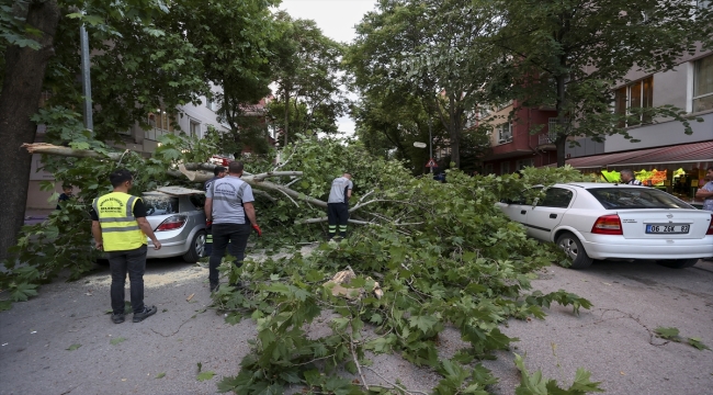 ANKARA (AA) - Başkentte, son günlerde sağanak nedeniyle kökleri zarar gören çınar ağacı, rüzgarın etkisiyle, park halindeki otomobilin üzerine devrildi.Olay, Çankaya İlçesi Remiz Oğuz Arık Mahallesi Güvenlik Caddesinde meydana geldi. Son günlerdeki yağışlar nedeniyle kökleri zarar gören ağaç, park halindeki aracın üzerine devrilirken, sürücü, çevredekilerin uyarısıyla son anda kurtuldu. Araçta hasar oluştu.