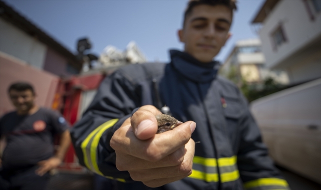 Antalya'da ayağı duvara sıkışan kuş yavrusu itfaiye ekiplerince kurtarıldı.Kepez ilçesi Ahatlı Mahallesi'ndeki istinat duvarında yavru kuşun sıkıştığını görenler durumu polis ve itfaiyeye bildirdi.Mahalleye gelen polis ekipleri, itfaiye ekiplerinin çalışması için sokağı trafiğe kapattı.Bir itfaiye eri merdivenle duvara çıkarak yavru kuşu kurtardı.Ayaklarına dolanan ip nedeniyle ayağının kırıldığı tespit edilen yavru kuş, itfaiye ekiplerince tedavi için veterinere götürüldü.Ekiplerin çalışmasının ardından sokak yeniden trafiğe açıldı.Kuşu görerek ihbar eden Ahmet Durmaz, itfaiye ekiplerine teşekkür ederek, yavru kuşun ayağının kırılmasına üzüldüklerini söyledi.