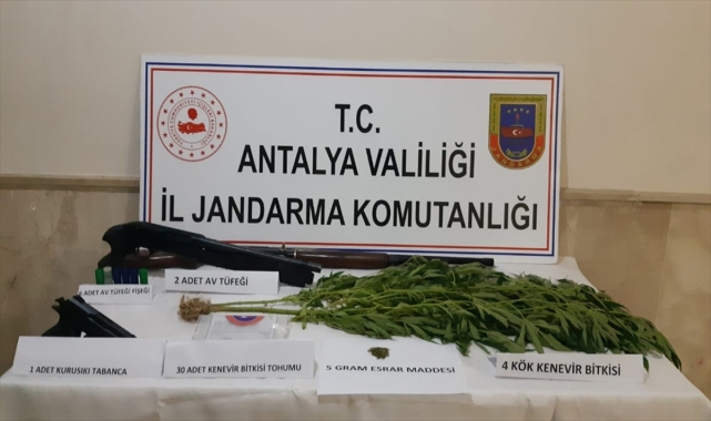 Antalya'nın Döşemealtı ilçesinde düzenlenen uyuşturucu operasyonunda 3 şüpheli gözaltına alındı.İl Jandarma Komutanlığı İstihbarat Şube Müdürlüğü ve Döşemealtı İlçe Jandarma Komutanlığı ekipleri, Ekşili Mahallesi'nde Hint keneviri yetiştirildiği ve uyuşturucu imal edildiği yönündeki bilgiler üzerine çalışma başlattı.Şüpheliler Ş.G, İ.G. ve S.Y'nin arazilerinde yapılan aramada, 26 kök Hint keneviri, 10 gram kubar esrar ile bir ruhsatsız av tüfeği ele geçirildi.Gözaltına alınan şüphelilerin jandarmadaki işlemleri sürüyor.