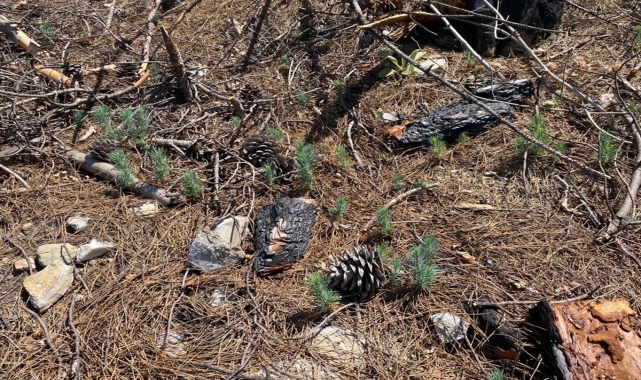 SÜLEYMAN ELÇİN / HATİCE ÖZDEMİR TOSUN - Antalya'da geçen yıl çıkan yangında küle dönen ormanlık alanlarda boy gösteren fidanlar, bölgede yeniden kısmen yeşil bir görüntü oluşturmaya başladı.Manavgat ilçesinde geçen yıl 28 Temmuz'da başladıktan sonra rüzgarın etkisiyle yayılan, 6 kişinin hayatını kaybetmesine, ormanda yaşayan çok sayıda canlının ölmesine, evlerin ve ağaçların küle dönmesine neden olan yangının üzerinden 1 yıl geçti.Yangının ardından Antalya Orman Bölge Müdürlüğü ekipleri, bölgenin yeniden yeşil görünümüne kavuşması için rehabilitasyon çalışmalarına başladı.Yanan alanlarda temizlik yapan ekipler, diğer yandan da ağaçlandırma çalışması yürüttü.Doğal gençleştirme yöntemlerinin yanı sıra dikimlerin de uygulandığı bölgelerde yeşeren kızılçam fidanları, yanan alanın kısmen de olsa yeniden yeşil bir görünüme kazanmasını sağladı.Yanan ağaçların köklerinin çevresinde yeşeren fidanlar, gözle görülür boyutlara ulaştı.Yanan alanlarda yapılan çalışmalar sonucu filizlerin boy göstermesiyle oluşmaya başlayan yeşil görüntü, AA ekibince helikopter ile havadan görüntülendi.- Yanan alanlardaki ağaçlandırma çalışmaları yüzde 90 tamamlandıAntalya Orman Bölge Müdürü Vedat Dikici, AA muhabirine, geçen yıldan bu yana hummalı bir çalışma yürüttüklerini söyledi.Yangın sonrası bir yandan bölgenin yanan ağaçlardan temizlendiğini, bir yandan da toprağın yeni fidanlar için hazırlandığını anlatan Dikici, bölgede gerek kozalaklardan dökülen gerekse elle atılan tohumların yanı sıra fidan dikimi ile yeşillendirme çalışmalarını gerçekleştirdiklerini bildirdi.Çalışmalarda yıl dolmadan yüzde 90'ının tamamlandığını belirten Dikici, şunları söyledi:"Sonbahara kadar bütün işimizi bitireceğiz. Bu kadar büyük bir alanı bir yıl içerisinde ağaçlandırabilmek gerçekten büyük bir başarı. Yanan alanlardaki fidanları biz görmeye başladık, 3 sene içerisinde de herkes daha net bir şekilde görecek. O zaman nasıl çalıştığımızı anlayacaklar. Çalıştığımız alanlar dümdüz tarla değil, dağda, bayırda, kayalıklarda çalışıyoruz. Kışın yağmurda arabalar çıkamadı, insanlar gidemedi ama biz çalışmamızı hiç durdurmadık."Dikici, gerek kozalaklardan dökülen tohumların gerekse elle yapılan tohumlamalarda fidanların boylarının 12-15 santimetreye kadar ulaştığını belirtti.- 1 milyon 645 bin fidan toprakla buluştuBölgede tohumlama çalışmalarının yanı sıra fidan dikimleri de gerçekleştirildiğini dile getiren Dikici, bugüne kadar ormanlık alana 1 milyon 404 bin kızılçam fidanı dikildiğini belirtti.Ayrıca yol kenarına ve köy yerleşim alanı kenarlarına yangına dayanıklı bitki türleri dikimleri yaptıklarını anlatan Dikici, 80 bin harnup, 25 bin servi, 44 bin defne, 60 bin zakkum, 32 bin diğer yapraklı tür ile toplam 1 milyon 645 fidanı dikimi gerçekleştirdiklerini bildirdi.Vedat Dikici, 2008'de Antalya'da 16 bin hektarlık alanın yandığını ve o dönemde de "bölgenin imara açılacağı, yanan alanlara otel yapılacağı" yönünde iddialar atıldığını hatırlatarak, o bölgeyi yine ormanlık alan haline getirdiklerini kaydetti.Gerek olası yangınlara anında müdahale, yangınların söndürülmesi gerekse yangın sonrası bölgenin ağaçlandırılması yönünde önemli yatırımlar yapıldığını belirten Dikici, yangınların büyük bir bölümünün insan kaynaklı olduğunu vurgulayarak, insanların da daha dikkatli olmalarını istedi.