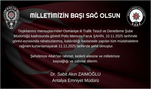 Antalya Emniyeti'nden Mekanı Cennet Ruhu Şad Olsun Mesajı