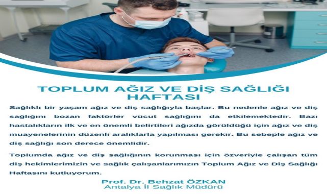 Antalya İl Sağlık Müdürlüğü, Toplum Ağız ve Diş Sağlığı Haftası vesilesiyle ağız ve diş sağlığının genel sağlık üzerindeki önemine dikkat çekti. Yapılan açıklamada, sağlıklı bir yaşamın temelinin ağız ve diş sağlığından geçtiği vurgulandı.