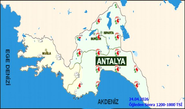 Meteoroloji, yağışların Antalya'nın doğu kesimleri, Burdur'un doğu kesimleri ve Isparta çevrelerinde yerel olarak kuvvetli olabileceği konusunda uyarıda bulundu. Vatandaşların ani sel, su baskını, yıldırım, yerel dolu yağışı ve yağış anında kuvvetli rüzgar gibi olumsuzluklara karşı dikkatli ve tedbirli olması tavsiye ediliyor.
