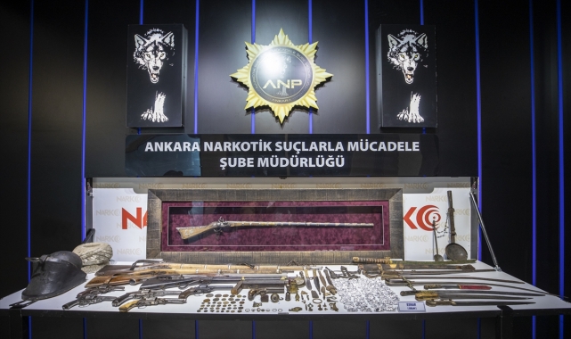 Narkotik Suçlarla Mücadele Şube Müdürlüğünde sergilenen tarihi eserler arasında 5 tüfek, 43 çeşitli tarih ve ebatlarda sikke, 5 mühür, 23 obje, kilit olduğu değerlendirilen obje, tarihi çakmak, 4 kılıfsız kılıç, 2 kılıflı kılıç, 8 hançer, terazi ağırlığı, 2 el terazisi, 7 eski tip toplu olarak tabi edilen tabanca, körük, sürmelik obje, 2 barut aleti, kurşun dökme kalıbı, deri saplı kapaklı kap, bakır yuvarlak şişe, nahit taş yer alıyor.