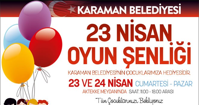 23 Nisan Cumartesi ve 24 Nisan Pazar günü Aktekke 15 Temmuz Demokrasi Meydanı’nda 14.00 – 18.00 saatleri arasında düzenlenecek olan etkinliğe tüm çocuklar davet edildi.İçerisinde eğitici ve öğretici oyunlarında yer aldığı şenlikte; Uzay Çadırı, Animatörler ve Palyaço Gösterileri, Zıpla Yapış Standı, Canlı Langırt, Kaydıraklar ve birçok oyun ve eğlence alanları yer alıyor.