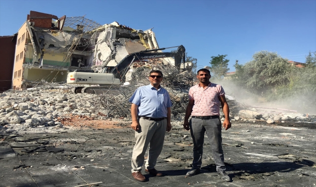 İlçe Milli Eğitim Müdürü Cengiz Yılmaz, 1997 yılında yapılan ve yapılan testlerde depreme dayanıksız olduğu tespit edilen 21 derslikli Nurettin Karaoğuz Vakfı Anadolu Lisesi'nin yıkım çalışmalarını inceledi.
