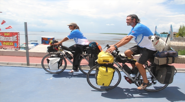 KONYA (AA) - Arjantin'den bisikletle dünya turuna çıkan ikili, Konya'nın Beyşehir ilçesine geldi.Gıda mühendisi Leonardo Santi (34) ile fotoğrafçı Carla Vales, 2019'da Arjantin'den bisikletleriyle dünya turuna çıktı. Kendilerine yol arkadaşı olan köpekleri Piri ile kilometrelerce pedal basarak seyahatlerini sürdüren ikilinin Türkiye'deki durağı Beyşehir ilçesi oldu.Beyşehir Bisiklet Topluluğu'nun misafiri olan Santi ile Vales, gölünü ve tarihi yerlerini gördüğü ilçeyi beğendiğini anlattı.Santi, gazetecilere, dünya turunda Türkiye'yi görmekten çok mutlu olduklarını söyledi.3 yıldır çeşitli ülkeleri gördüklerini, bu yıl gezilerini sonlandırmayı planladıklarını aktaran Santi, "Türk insanı çok misafirperver. Türkiye'deki insanlar çok nazik. Türkiye gezisi sırasında çok ilginç anlar yaşadık. Türk misafirperverliğine hayran kaldık. Olağan dışı bir durum olmazsa günde 8 saat pedal çevirip, 50 kilometre bisiklet sürüyoruz." diye konuştu.Santi, sonraki duraklarının Salda Gölü ve Pamukkale olduğunu kaydetti.
