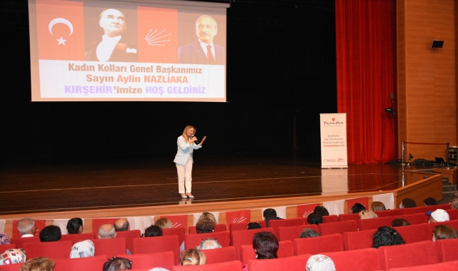 CHP Kadın Kolları Genel Başkanı Aylin Nazlıaka, "Cumhuriyet Halk Partisi kadrolarıyla, projeleriyle, kurucu ve kurtarıcısından aldığı güçle bugün dimdik ayaktadır ve iktidar yürüyüşünü de sürdürmektedir." dedi.Neşet Ertaş Kültür ve Sanat Merkezi'nde düzenlenen halk buluşmasında kadınlarla bir araya gelen Nazlıaka, CHP'nin Aile Destekleri Sigortası Projesi hakkında bilgi verdi.Nazlıaka, iktidara geldiklerinde hemen İstanbul Sözleşmesi'ni yürürlüğe koyacaklarını ve tüm maddelerini uygulayacaklarını söyledi.Parti olarak 81 il ve 973 ilçede örgütlü olduklarını belirten Nazlıaka, "Her hafta salı akşamları video konferanslarla eğitimler düzenliyoruz. Her hafta sürekli kendimizi eğitiyoruz. Yetmez dedik, partimize sürekli yeni üyeler kattık. Son bir yılda 100 bin yeni kadın üye kattık. Kırşehir'deki sayımızı daha da inşallah artıracağız. Her geçen gün ailemizi büyüttük, güçlendirdik." diye konuştu."Cumhuriyet Halk Partisi kadrolarıyla, projeleriyle, kurucu ve kurtarıcısından aldığı güçle bugün dimdik ayaktadır ve iktidar yürüyüşünü de sürdürmektedir." diyen Nazlıaka, kadınlardan talepte bulunarak "Seçime çok az zaman kaldı. Her an erken seçim olabilir. Olmadığı koşulda da zaten bir yıldan az zaman kaldı. Her gün akşam başınızı yastığa koyduğunuzda 'Ben bugün ülkemi karanlıktan aydınlığa taşımak için ne yaptım?' sorusunu sorun. O gün bu yönde bir şey yapmadıysanız da uykunuz kaçsın. Her günün hakkını vermemiz gereken dönemden geçiyoruz." ifadesini kullandı.Kırşehir Belediye Başkanı Selahattin Ekicioğlu, CHP Kırşehir Milletvekili Metin İlhan, İl Başkanı Baran Genç ve İl Kadın Kolları Başkanı Nergiz Gökçınar'ın da konuşma yaptığı toplantıda, eczacı, taksi şoförü, çiftçi, esnaf ve mağaza çalışanı kadınlar, kadına yönelik şiddetle mücadele konusundaki düşüncelerini anlattı.