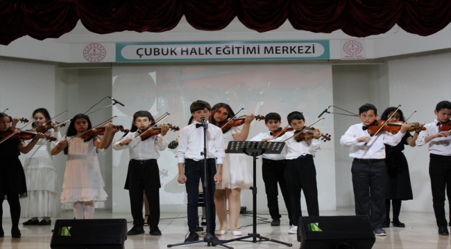 ANKARA (AA) - Ankara'nın Çubuk ilçesinde kırsal mahallerden taşımalı sistem ile eğitim verilen Süleyman Şah ilk ve ortaokulu öğrencileri yıl sonu konseri verdi.Çubuk Halk Eğitim Merkezi Konferans Salonu'nda düzenlenen konserde öğrenciler, birbirinden önemli ezgileri başarıyla seslendirdi.Konsere, Ankara Vali Yardımcısı Mustafa Erkayıran, Çubuk Kaymakamı Adem Keleş, Belediye Başkanı Baki Demirbaş, İlçe Milli Eğitim Müdürü Alican Kılıç, MHP İlçe Başkanı İhsan Mutlu, eğitim görevlileri ile öğrenci velilileri katıldı.Müzik öğretmeni Mustadin Şahinbaş, öğrencilerin kemanla ilk kez geçen yıl Ekim ayında tanıştığını ve ikinci konserlerini verdiğini belirtti.Kemanlar için Belediye Başkanı Baki Demirbaş'a teşekkür eden Şahinbaş, "Belediye Başkanımız tarafından okulumuza 24 keman alındı. Sonuç olarak güzel bir koro oluşturmuş olduk." diye konuştu.