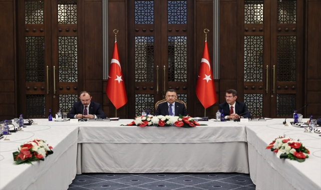 ANKARA (AA) - Cumhurbaşkanı Yardımcısı Fuat Oktay başkanlığında yapılan toplantıda, e-Ticaret konusu ele alındı.Cumhurbaşkanlığı Külliyesi'nde dün e-Ticaret firmalarıyla istişare toplantısı düzenleyen Oktay, bugün de başta gıda ve konfeksiyon perakendecileri olmak üzere, sektörde yer alan şirketlerin temsilcileriyle bir araya geldi.Toplantıya, Ticaret Bakanı Mehmet Muş, AK Parti Genel Başkan Yardımcısı Nurettin Canikli, Sanayi ve Teknoloji Bakan Yardımcısı Çetin Ali Dönmez ile ilgili bürokratlar katıldı.