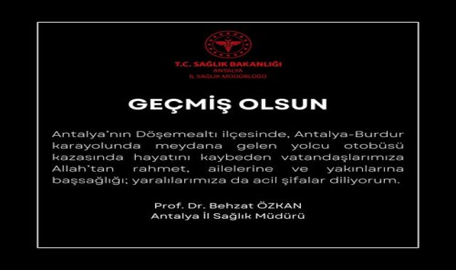 Antalya'nın Döşemealtı ilçesinde meydana gelen yolcu otobüsü kazasında hayatını kaybedenlere rahmet, yaralılara acil şifa dilendi.