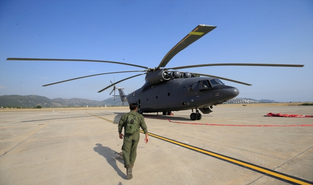SÜLEYMAN ELÇİN - Marmaris'te devam eden orman yangınına müdahale eden ve dünyanın en büyük helikopterleri arasında gösterilen Mi26 tipi helikopterin alevlerle mücadelesi Anadolu Ajansı (AA) ekibince görüntülendi.İlçede salı akşam saatlerinde başlayan ve halen devam eden yangına havadan ve karadan müdahaleler sürerken Dalaman Havalimanı'nda uçak ve helikopter yoğunluğu yaşanıyor.Uçuşların planlandığı komuta merkezinin de bulunduğu havalimanında uçaklar, su ve yakıt ikmali yaptıktan sonra yangın bölgesine giderek su bırakıyor.Geçen yıl Manavgat'taki orman yangınında da görev yapan Ukrayna'dan gelen AN-32 P tipi yangın söndürme uçağının da aralarında bulunduğu uçaklar, birbiri ardına havalimanından yangın bölgesine hareket ediyor.Uçakların sürekli iniş-kalkış yapması nedeniyle yoğun bir hava trafiğinin olduğu havalimanına helikopterler de zaman zaman yakıt ikmali için geliyor.O helikopterler arasında Orman Genel Müdürlüğü bünyesinde bulunan Mi26 tipi yangın söndürme helikopteri de yer alıyor.Helikopterin, yangınla zorlu mücadelesine AA ekipleri de eşlik etti.Dünyanın askeri ve sivil anlamda en büyük helikopterleri arasında gösterilen Mi26 tipi helikopter, Dalaman Havalimanı'nda ikmal yaptıktan sonra denizden aldığı suyu alevlerin yükseldiği Bördübet mevkisine bıraktı.Yaklaşık 2,5 saat havada kalan Mi26, 10 sorti yaparak alevlerin üzerine toplamda 100 ton su attı.Helikopterin koordinatör pilotu Süleyman Örsel, Mi26 tipi helikopterin dünyanın askeri ve sivil anlamda en büyük ve en güçlü helikopteri olduğunu söyledi.Helikopterin su kapasitesinin 10 ton olduğunu aktaran Örsel, "Yangında bu helikopter göz bebeğimiz. Su kapasitesi açısından en büyük helikopterler arasında yer alıyor. Yangınla mücadelede etkin bir rol oynadı. Gün doğumuyla zorlu mesaimize başlıyoruz. Zorlu şartlarda çalışıyoruz ama yeşil vatanı korumak bizim görevimiz. Canla başla alevlerle mücadele ediyoruz." dedi.