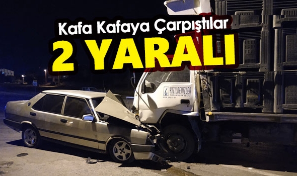 Elma yüklü kamyonet ile otomobil kafa kafaya çarpıştı: 2 yaralı
