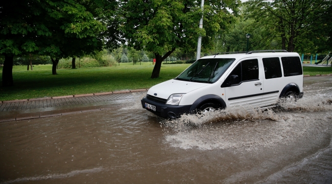 ESKİŞEHİR (AA) - Eskişehir'de şiddetli yağış hayatı olumsuz etkiledi.Kentte öğleden sonra aniden bastıran dolu ve sağanak nedeniyle bazı cadde ve sokaklarda su birikintileri oluştu, yayalar ve sürücüler zor anlar yaşadı.Sürücüler ilerlemekte güçlük çekerken zaman zaman doluya dönüşen yağış nedeniyle trafikte aksamalar da yaşandı.