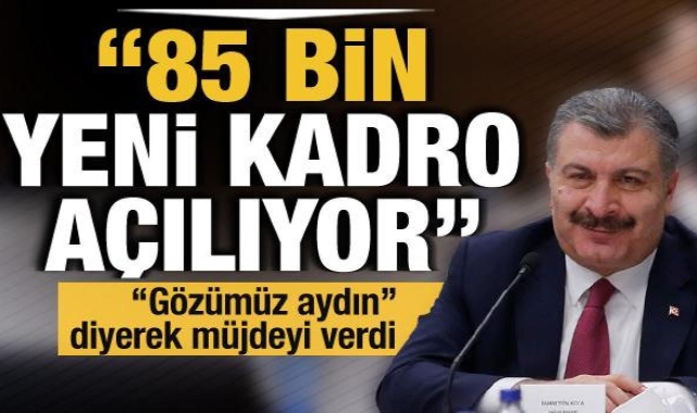 Sağlık Bakanı Fahrettin Koca on binlerin beklediği istihdam müjdesini sosyal medya hesabından duyurdu.Koca personel alımıyla ilgili "Bakanlığımız, bu yıl 85 Bin kadro açıyor. Yeni çalışma arkadaşlarımızın sayısı, bazı ülkelerin nüfusundan fazla! Gözümüz aydın." ifadelerini kullandı."Sayın Cumhurbaşkanımızın 14 Mart Tıp Bayramı'nda sağlık çalışanlarına verdiği 5 müjde, bugün itibarıyla, yine müjde değerinde yeni gelişmelerle tamamlandı. Camiamız adına kendilerine şükranlarımı sunuyorum." ifadelerini kullanan Koca, ayrıca sağlık çalışanlarının özlük hakları ve emeklilik şartlarının iyileştirilmesine yönelik katkılarından dolayı Hazine ve Maliye Bakanı Nureddin Nebati ile Çalışma ve Sosyal Güvenlik Bakanı Vedat Bilgin'e teşekkürlerini iletti."GÖRÜLMEMİŞ BÜYÜKLÜKTE KADRO AÇILIYOR"Koca, Cumhurbaşkanı Erdoğan'ın sağlık kuruluşlarındaki uzman hekimlerin hastalara daha fazla vakit ayırabilmeleri ve daha kaliteli hizmet sunabilmeleri amacıyla 85 bin yardımcı personel kadrosu açılacağına yönelik açıklamalarına ilişkin de şunları kaydetti:"Bakanlığımız, bu yıl 85 bin kadro açıyor. Yeni çalışma arkadaşlarımızın sayısı, bazı ülkelerin nüfusundan fazla. Sağlıkta 'Beyaz Reform'a destek kuvvet, 85 bin yeni çalışma arkadaşı! Görülmemiş başarılar için görülmemiş büyüklükte bir kadro açılıyor. Gözümüz aydın.""KAPSAM DIŞI" KALMADIKoca son paylaşımında ise "Matematiksel anlamı: “Kapsam dışı” kalmadı." ifadelerini kullandı.