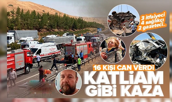 Son dakika haberi: Gaziantep'te yolcu otobüsü ve bir ambulansın da karıştığı kazada ilk belirlemelere göre 16 kişi hayatını kaybetti.KAZA YERİNE GELEN AMBULANS, İTFAİYE VE CANLI YAYIN ARACINA OTOBÜS ÇARPTIKaza, saat 11.30 sıralarında Gaziantep- Nizip Otoyolu’nda meydana geldi. Bir otomobilin dere yatağına uçtuğu ihbarı üzerine bölgeye polis, ambulans ve itfaiye ekipleri sevk edildi.Ekipler, kazazedelere müdahale etmek için araçlarını otoyola durdurdu. Bu sırada bir yolcu otobüsü, ambulans, itfaiye ve İHA’nın canlı yayın aracına çarpıp devrildi.Bunun üzerine bölgeye çok sayıda takviye sağlık ekibi yönlendirdi. Yaralılar, ambulanslarla çevre hastanelere kaldırıldı. BAKAN SOYLU: BAŞIMIZ SAĞOLSUNGaziantep'teki kazayla ilgili "Başımız sağ olsun" sözleriyle taziyelerini ileten İçişleri Bakanı Süleyman Soylu, bilgilendirmelerde bulundu. Bakan Soylu, "Gaziantep Nizip Otoyolunda kazaya müdale eden 112 Sağlık, İtfaiye ve Polis ekiplerine çarpan otobüsün yan yatması sonucu ilk belirlemelere göre; 2 Sağlık Görevlisi, 2 İHA Muhabiri, 3 İtfaiyeci, 8 yolcu olmak üzere toplam 15 vatandaşımız hayatını kaybetti. Yaralılar hastaneye kaldırıldı. Valimiz, Emniyet Müdürümüz kaza yerindeler. Vefat eden vatandaşlarımıza Allah rahmet eylesin, yaralılarımıza acil şifalar nasip eylesin." dedi.VALİ GÜL: 16 VATANDAŞIMIZ VEFAT ETTİGaziantep Valisi Davut Gül, Gaziantep- Nizip Otoyolu'nda meydana gelen kazada, 15 kişinin yaşamını yitirdiğini, 22 kişinin de yaralandığını açıkladı. Gül, Twitter hesabından yaptığı açıklamada, “TAG Otoyolu Gaziantep- Nizip Arası 20. km’de otobüs, kurtarma ekibi ve ambulansın karıştığı kazada ilk belirlemelere göre; 3 itfaiye personeli, 2 sağlık personeli, 2 gazeteci olmak üzere toplam 16 vatandaşımız vefat etmiş, 22 vatandaşımız yaralanmıştır” dedi.BAŞKAN ŞAHİN'DEN SON DAKİKA AÇIKLAMASIGaziantep Büyükşehir Belediye Başkanı Fatma Şahin, kazayla ilgili bir açıklamada bulundu. Şahin, "Gaziantep-Nizip arası otoyolda ambulans, otobüs ve kurtarma ekibinin yer aldığı kazada ilk belirlemelere göre; 3 itfaiye personelimiz, 2 sağlık personelimiz, 2 basın mensubumuz olmak üzere 16 vatandaşımız vefat etmiş, 22 vatandaşımız yaralanmıştır. Milletimizin başı sağ olsun." dedi.SORUŞTURMA BAŞLATILDIAdalet Bakanı Bekir Bozdağ, Nizip Cumhuriyet Başsavcılığı'nın, kazayla ile ilgili soruşturma başlattığını duyurdu. Hayatını kaybedenlerin ailelerine ve yakınlarına başsağlığı mesajlarını ileten Bozdağ, sürücülerin daha dikkatli olması gerektiğini söyledi. Bozdağ, "Konu bütün yönleriyle araştırılacaktır. Ancak bu giden canlarımızı geri getiriyor. Temennimiz bir daha böyle bir kazanın olmaması yönünde. Ayrıca İhlas Haber Ajansı ve basın camiasına da başsağlığı diliyorum. İtfaiyecilerimiz ve sağlık çalışanlarımıza da başsağlığı diliyorum." dedi.Cumhurbaşkanı Yardımcısı Fuat Oktay: Gaziantep-Nizip yolunda yaşanan kazaya müdahale ederken görevleri başında hayatlarını kaybeden sağlık ve itfaiye personelimiz ile gazeteci kardeşlerimize ve vatandaşlarımıza Allah'tan rahmet, yaralılarımıza acil şifalar diliyorum. 'Dışişleri Bakanı Mevlüt Çavuşoğlu: Gaziantep-Nizip otoyolunda gerçekleşen elim kazada kaybettiğimiz vatandaşlarımıza Allah’tan rahmet, yaralılarımıza acil şifa diliyorum. Başımız sağolsun…Ulaştırma ve Altyapı Bakanı Adil Karaismailoğlu: Gaziantep-Nizip Otoyolu’nda yaşanan elim kazada görevi başında hayatını kaybeden fedakar sağlık çalışanlarımıza, itfaiyecilerimize, gazetecilerimize ve vatandaşlarımıza Allah'tan rahmet, ailelerine sabır, yaralılarımıza acil şifalar diliyorum. Başımız sağ olsun.İletişim Başkanı Fahrettin Altun: Milletimizin başı sağolsun. Bu elim kazada hayatını kaybeden vatandaşlarımıza Allah’tan rahmet, yakınlarına, sevenlerine sabırlar diliyorum. Yaralı vatandaşlarımıza da acil şifalar temenni ediyorum.Esenler Belediye Başkanı Tevfik Göksu: Gaziantep’te yaşanan elim trafik kazasında hayatını kaybedenlere Cenab-ı Allah’tan rahmet; ailelerine ve yakınlarına sabırlar diliyor, yaralılarımıza acil şifalar niyaz ediyorum.Uluslararası Medya Enformasyon Derneği (UMED): Gaziantep'te İhlas Haber Ajansı (İHA) canlı yayın aracına yolcu otobüsünün çarpması sonucu iki gazeteci arkadaşımızın hayatını kaybettiğini derin bir üzüntü ile öğrendik. Kazada hayatını kaybeden tüm vatandaşlarımıza Allah'tan rahmet, yakınlarına başsağlığı diliyoruz.haber7