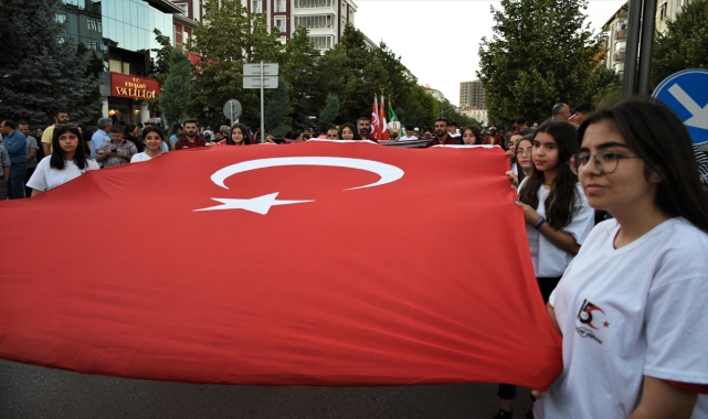 Sivas, Kırıkkale, Kırşehir, Yozgat, Niğde ve Nevşehir'de 15 Temmuz Demokrasi ve Milli Birlik Günü dolayısıyla yürüyüş düzenlendi.Sivas'ta Tren Garı önünde başlayan yürüyüş, Atatürk Kongre Müzesi önünde sona erdi. İl protokolü ve vatandaşlar, Türk bayraklarıyla yürüyüşe eşlik etti.Atatürk Kongresi Müzesi bahçesinde devam eden programa Sivas Valisi Yılmaz Şimşek, AK Parti Sivas milletvekilleri Mehmet Habib Soluk ve Semiha Ekinci, MHP Sivas Milletvekili Ahmet Özyürek, Garnizon ve 5. Piyade Eğitim Tugay Komutanı Piyade Albay Yılmaz Doğan, Belediye Başkanı Hilmi Bilgin, il protokolü ve vatandaşlar katıldı.Programda saygı duruşunda bulunulması ve İstiklal Marşı'nın okunmasının ardından Kur'an-ı Kerim tilaveti yapıldı.Vali Şimşek, yaptığı konuşmada, Türk milletinin, 15 Temmuz'da sonsuza kadar unutulmayacak, torunlarına miras olarak gururla bırakacağı bir demokrasi destanı yazdığını belirtti.Cumhurbaşkanı Recep Tayyip Erdoğan'ın ulusa sesleniş konuşmasının ekranlardan izlenmesinin ardından Sivas Devlet Türk Halk Müziği Korosu, kahramanlık türküleri seslendirdi.- KırıkkaleKırıkkale Valisi Bülent Tekbıyıkoğlu, Belediye Başkanı Mehmet Saygılı, protokol üyeleri ve çok sayıda vatandaş, 15 Temmuz dolayısıyla düzenlenen yürüyüşe katıldı.Kırıkkale Belediyesi Mehter Takımı eşliğinde Türk bayraklarıyla yürüyüşe katılanlar, Nur Geçit, Atatürk Bulvarı, Ankara ve Zafer caddelerinden geçerek tekrar Cumhuriyet Meydanı'na geldi.Meydanda devam eden törende saygı duruşu ve İstiklal Marşı'nın ardından Kur'an-ı Kerim okundu ve dua edildi.Vali Tekbıyıkoğlu, yaptığı konuşmada, Türk milletinin tarih boyunca büyük sınavlar verdiğini, badireler atlattığını, tehlikeler geçirdiğini ve milletin istiklalini verdiği mücadeleyle her zaman elde ettiğini kaydetti.Belediye Başkanı Saygılı da Kırıkkale'nin nüfusuna göre en fazla şehit veren il olduğunu söyledi.Daha sonra Cumhurbaşkanı Erdoğan'ın "15 Temmuz Millete Sesleniş Konuşması" izlendi.Yahşihan ilçesinde de Kaymakam Ender Faruk Uzunoğlu, Belediye Başkanı Osman Türkyılmaz, protokol üyeleri ve vatandaşların katılımıyla yürüyüş düzenlendi.- KırşehirKırşehir'deki etkinlikler, Türkiye Aşkına Milli Birlik ve Demokrasi Yürüyüşü ile başladı.Vali Hüdayar Mete Buhara, AK Parti Kırşehir Milletvekili Mustafa Kendirli, il protokolü ve vatandaşlar, Kırşehir Valiliği önünden Cacabey Meydanı'na mehter takımı eşliğinde Türk bayraklarıyla yürüdü.Meydandaki etkinliklerde saygı duruşunda bulunulması ve İstiklal Marşı'nın okunmasının ardından Kur’an-ı Kerim tilaveti yapıldı.Vali Buhara, yaptığı konuşmada, hain darbe girişiminin Cumhurbaşkanı Erdoğan'ın riyasetinde, milletin dirayetli duruşu karşısında sonuçsuz kaldığını vurguladı.Milletvekili Kendirli ve Kırşehir Belediye Başkan Yardımcısı Nuri Araz da konuşma yaptı.15 Temmuz darbe girişimi konulu slayt gösterimi yapılan etkinlikte vatandaşlar, Cumhurbaşkanı Erdoğan’ın konuşmasını sinevizyondan izledi.Kırşehir Belediyesi Mehter Takımı, kahramanlık türküleri seslendirdi.- YozgatYozgat'ta 15 Temmuz Demokrasi ve Milli Birlik Günü dolayısıyla Lise Caddesi'nden mehter takımı eşliğinde başlayan yürüyüş, Cumhuriyet Meydanı'nda sona erdi.Buradaki programda saygı duruşunda bulunulması ve İstiklal Marşı'nın okunmasının ardından Kur'an-ı Kerim tilaveti yapıldı, mehter takımı konser verdi.Yozgat Valisi Ziya Polat, AK Parti Yozgat Milletvekili Yusuf Başer, MHP Yozgat Milletvekili İbrahim Ethem Sedef, Belediye Başkanı Celal Köse, günün anlam ve önemine ilişkin konuşma yaptı.Programda Cumhurbaşkanı Erdoğan'ın konuşması ekrandan izlettirildi.- NiğdeNiğde'de Derbent kavşağından Valilik önüne kadar yürüyüş ve fener alayı düzenlendi, off-road araçlarıyla geçiş yapıldı, Niğde Belediyesi Mehter Takımı konser verdi.Valilik bahçesinde devam eden programda saygı duruşunda bulunuldu, İstiklal Marşı ve Kur'an-ı Kerim okundu.Vali Mustafa Koç, yaptığı konuşmada, 15 Temmuz'da vatanı ve milleti yok etmek isteyen FETÖ'nün Türk tarihinin en büyük ihanetlerinden birisini sahnelemeye çalıştığını ancak Türk milletinin ihaneti engellediğini söyledi.Konuşmaların ardından vatandaşlar, 15 Temmuz belgeseli ve Cumhurbaşkanı Erdoğan'ın ulusa sesleniş konuşmasını izledi.AK Parti Niğde milletvekilleri Yavuz Ergun ve Selim Gültekin ile Belediye Başkanı Emrah Özdemir de konuşma yaptı.Daha sonra 15 Temmuz'a özel konser verildi.- NevşehirNevşehir'de valilik ve belediye tarafından TÜİK meydanında düzenlenen programa Vali İnci Sezer Becel, Belediye Başkanı Mehmet Savran, il protokolü ve vatandaşlar katıldı.Saygı duruşunda bulunulması ve İstiklal Marşı'nın okunması ile başlayan programda Kur'an-ı Kerim okundu.Gençlik ve Spor İl Müdürlüğü tarafından düzenlenen sancak koşusunda tören alanına gelen sporcular, Vali Becel'e sancağı teslim etti.Törende konuşan Vali Becel, Türk milletinin tarih boyunca bölünmez bütünlüğü için mücadele ettiğini ve bu uğurda nice şehitler verdiğini belirterek, "15 Temmuz gecesi de darbecilere karşı ilk kurşunu sıkan Ömer Halisdemir'i ve nice kahramanı yine bağrından çıkarmıştır." dedi.Belediye Başkanı Savran da hainlerin hayalinin "Recep Tayyip Erdoğansız bir Türkiye" olduğunu ancak milletin buna izin vermediğini vurguladı.Konuşmaların ardından Abdurrahman Önül ve Ali Kınık, çeşitli ilahiler seslendirdi.