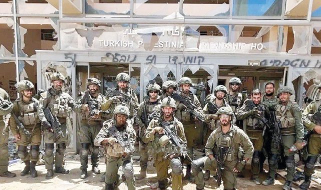 GAZZE Şeridi’nde 10 aydır süren savaşta uluslararası hukuka aykırı şekilde tıbbi tesisleri hedef alan İsrail ordusu, Gazze şehrindeki Türk-Filistin Dostluk Hastanesi’ni üse çevirdi. Filistin medyası, hastane önünde poz veren İsrail askerlerinin fotoğrafını yayınladı. Dışişleri Bakanlığı’ndan “Sorumluların hesap vermesi için çabalamaya devam edeceğiz” açıklaması geldi.TEK KANSER HASTANESİTürk-Filistin Dostluk Hastanesi, Gazze’de kanser hastalarına hizmet veren tek hastane olma niteliği taşıyor. Dışişleri’nin açıklamasında, binayı askeri üs gibi kullanan İsrail ordusunun bir grup askerinin çektirdiği fotoğrafın “İsrail’in uluslararası hukuk ve uluslararası insancıl hukuku ihlalinin yeni bir delili” ve “İsrail’in Filistin halkını yok etmeyi amaçlayan sistematik politikalarının bir parçası” olduğu belirtildi. “Bu saldırıların sorumlularının uluslararası mahkemeler önünde hesap vermesi için çaba göstermeye devam edeceğiz” denildi. Türkiye’nin inşaatını finanse ettiği 180 yataklı hastane, kanser hastalarına hizmet vermek üzere 2017’de açılmıştı.AYLARDIR ÇALIŞAMIYORHastane, İsrail’in Gazze’ye saldırılarının başladığı 2023 Ekim ayının sonlarında ağır şekilde bombalandı. Hastane müdürü Dr. Subhi Skaik, bombalardan birinin binanın üçüncü katına isabet ettiğini, hastalar önceden tahliye edildiğinden can kaybı yaşanmadığını duyurdu. Dışişleri Bakanlığı, “kurumun koordinatları dahil, gerekli her türlü bilgi İsrail makamlarıyla önceden paylaşılmış olmasına karşın” saldırının gerçekleştirilmesine sert tepki gösterdi. Hastane, 2023’ün Kasım ayında abluka sebebiyle bölgeye yakıt girişine izin verilmemesiyle hizmet dışı kaldı. Hastalar Gazze’nin diğer bölgelerindeki hastanelere sevk edilirken Ankara, hastaların bir kısmının Türkiye’ye tahliyesini gerçekleştirdi.