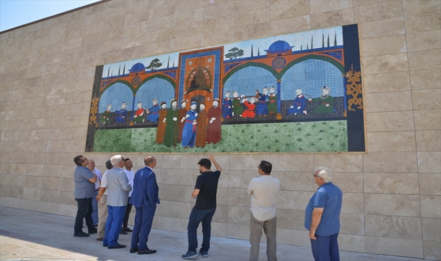 Kırşehir Ahi Evran Üniversitesi (KAEÜ) Tıp Fakültesi binası duvarına, Selçuklu ve Osmanlı döneminde hekimlerin şed kuşanmasını içeren çini tablo konuldu.KAEÜ'den yapılan açıklamaya göre, Rektör Prof. Dr. Vatan Karakaya, fakülteyi ziyaret ederek duvara yaptırılan çini eseri inceledi.Çini çalışması hakkında bilgi veren Tıp Fakültesi Dr. Öğr. Üyesi Arif Hüdai Köken, 7 metre uzunluğunda ve 2 metre 80 santimetre genişliğindeki eserin geleneksel Türk sanatlarından çini ve minyatürü bir araya getirdiğini ifade etti.Eserin, Anadolu Selçuklu ve Osmanlı tıbbını temsil eden görselleri barındırdığını anlatan Köken, şöyle devam etti:"Bu çalışmada İslam tıbbının önemli hekimlerinden İbn-i Sina'nın silüetini, Selçuklu döneminden Kayseri Gevher Nesibe Darüşşifası'nın taç kapısı ve yılan sembolünü, Çankırı Cemaleddin Ferruh Şifahanesi'ndeki yılan sembolünü, Osmanlı döneminden Sabuncuoğlu Şerefeddin'in çizimleriyle tasvir edilen bazı tıbbi uygulamaları ve Ahilik teşkilatının ustalık töreni olan şed kuşanma törenini görmek mümkün. Bu görsellerde Ahilik teşkilatında olan usta-çırak eğitim modeli ile şed kuşatmanın tıp eğitiminde de var olduğu görülüyor."Rektör Karakaya da Tıp Fakültesi'ne ayrı görsellik kazandıran çini eserin tıp tarihini anlatması bakımından dikkat çekici olduğunu aktardı.Emek veren çini ustalarına ve fakülte yönetimine teşekkür eden Karakaya ve beraberindekiler, eserin önünde hatıra fotoğrafı çektirdi.