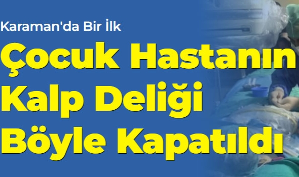 Karamanoğlu Mehmetbey Üniversitesi Tıp Fakültesi Karaman Eğitim ve Araştırma Hastanesi çocuk kardiyoloji polikliniğine üfürüm duyulması nedeniyle sevk edilen 9 yaşındaki hastanın kalp deliği kapalı yöntemle açık ameliyata gerek kalmadan kapatıldı.Çocuk Kardiyoloji Uzmanı Prof. Dr. Hayrullah ALP konuyla ilgili açıklamasında ‘’ 9 yaşında bir kız hastamızdı. Çocuk kardiyoloji polikliniğimize üfürüm duyulması nedeniyle sevk edilmişti. Geldiğinde yapılan ekokardiyografide 13 mm. Çapında atrial septal defekt denen kalp deliği tespit edildi. Bunun üzerine hastanemizde kapalı yöntemle ilk kez bu işlemi yapmaya karar verdik. Anjiyoya alındı ve anjiyo esnasında kalp deliği buraya uygun bir cihaz ile kapatıldı. Bu gibi üst düzey işlemlerin Hastanemizde yapılmaya başlamasından ve buna öncülük etmekten çok mutluyum.’’ dedi.Karamanoğlu Mehmetbey Üniversitesi Tıp Fakültesi Karaman Eğitim ve Araştırma Hastanesi Başhekimi Dr. Öğr. Üyesi Ahmet YILMAZ ise yaptığı açıklamada ‘’ Hastanemizde bu tür ameliyatın yapılmasının gururunu yaşıyoruz. Hastanemiz bu tür ameliyatları yapma imkanına ve teknik donanıma sahip. Bundan sonra da bu tür ameliyatları gerçekleştirmeye devam edeceğiz. Bu ameliyatı gerçekleştiren emeği geçen herkese teşekkür ediyorum ve tüm hastalarımıza acil şifalar diliyorum.” dedi.