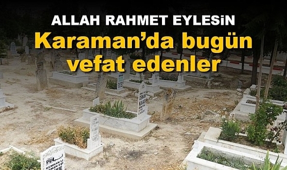 Karaman’da bugün vefat eden isimler şöyle;MÜŞERREF ALTINSOYAslen Karamanlı olup Cumhuriyet mahallesinde ikamet etmekte olan Müşerref Altınsoy (90) vefat etmiştir. Cenazesi 10 Ekim Pazartesi günü öğle namazına müteakip Musalladan kaldırıldı.Haberant.com ailesi olarak merhumeye Allah'tan rahmet, sevenlerine başsağlığı diliyoruz.