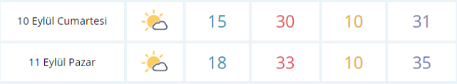 Meteoroloji Genel Müdürlüğü sitesinden alınan bilgilere göre Karaman'da bu hafta sonu sıcaklıkların mevsim normallerinin üzerinde seyretmesi bekleniyor.Hafta içi düşen sıcaklıkların hafta sonu itibari ile tekrar yükselmesi bekleniyor.Meteoroloji'den alına son verilere göre Karaman'da hafta sonu hava durumu şu şekilde;10 Eylül Cumartesi günü en yüksek hava sıcaklığı 30 derece, en düşük hava sıcaklığı 15 derece olacak. Havanın az bulutlu olması bekleniyor. 11 Eylül Pazar günü en yüksek hava sıcaklığı 33 derece, en düşük hava sıcaklığı 18 derece olacak. Havanın az bulutlu olması bekleniyor.