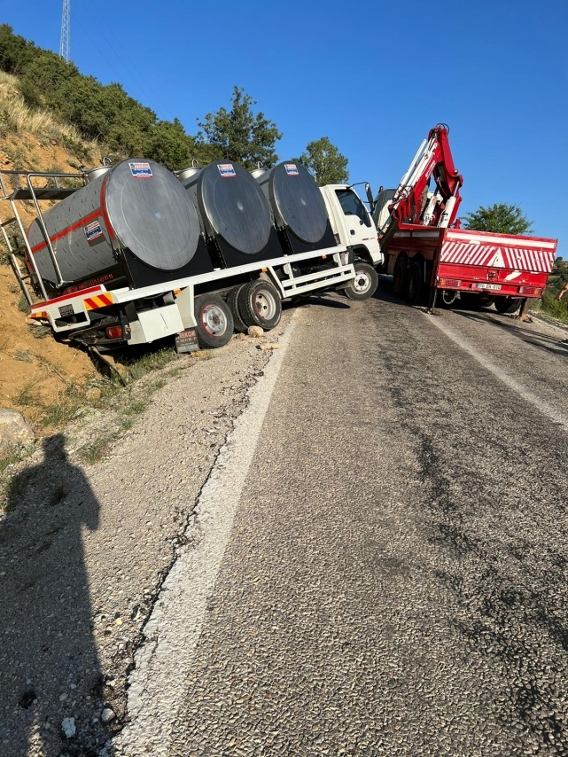 Karaman'da meydana gelen kazada süt kamyonu devrildi.Kaza saat 18.30 sularında Karaman Pınarbaşı Köyü Öskes Mevkii'nde meydana geldi.Bozkandak, Kızılyaka, Başkışla köyleri yönünden Pınarbaşı, Karaman istikametine gelen 70 AAH 344 plakalı süt kamyonu, sürücüsünün direksiyon hakimiyetini kaybetmesi sonucu yol kenarına devrildi.Bir süre yolun trafiğe kapanmasına sebep olan kazada herhangi bir ölü ve yaralılının olmaması sevindirirken, süt kamyonunda maddi hasar oluştu.Olay yerine çağrılan kurtarıcı ile devrilen süt kamyonu kurtarılma çalışmaları devam edip yol trafiğe tek şerit olarak açıldı.