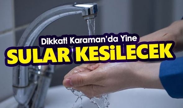 Karaman'da ana hat su borusunda meydana gelen arıza nedeni ile su kesintisi yaşanacak.Karaman Belediyesi tarafından Karaman genelinde su kesintisi yaşanacağı bildirildi.Vatandaşların su kesintisi nedeni ile zor durumda kalmaması için gerekli önlemlerini almaları için Belediye tarafından yapılan uyarıda;"Tüm halkımıza duyurulur.