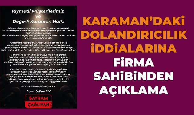 Karaman’da bir beyaz eşya bayisine yönelik ortaya atılan ve kamuoyunda geniş yankı uyandıran dolandırıcılık iddialarına ilişkin firma sahibi Bayram Çağlıyan, yazılı bir açıklama yayımladı.