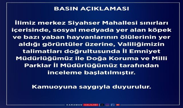 Karaman Valiliği, güncel gelişmeler hakkında kamuoyunu bilgilendirmek amacıyla bir basın açıklaması yayımladı.Açıklamada, valiliğin çalışmaları ve bölgedeki önemli konulara dair bilgiler paylaşıldı.