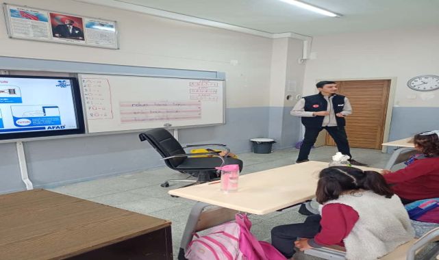 Karaman'da Vali Halil Nimetoğlu İlkokulu öğrencilerine afet farkındalık eğitimi, çök-kapan-tutun uygulaması ve tahliye tatbikatı yapıldı. Öğrencilere ayrıca acil durum araçları tanıtıldı.