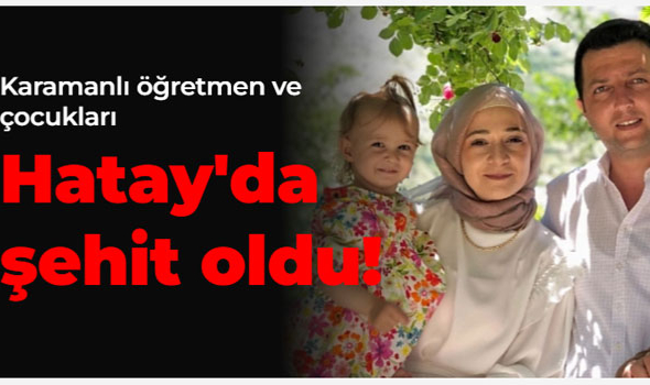 Hatay'ın Altınözü Keskincik ilkokulunda öğretmenlik yapan Ermenekli vatandaş çocukları ile birlikte depremde enkazın altında kalarak şehit oldu.Ermenek'in Balkusan Köyü'nün muhtarı Kazım Yılmaz'ın oğlu Uğur Yılmaz çocukları ile birlikte Kahramanmaraş merkezli 7.7 büyüklüğündeki felakette şehit oldu. Eşi Melike Yılmaz ise yaralı şekilde kurtarıldı.Şehit öğretmenin ve çocuklarının bu sabah enkaz altından cansız bedenine ulaşıldı. Çocuklarının birisi 4 yaşındaki oğlu Mert Yılmaz ve 2 yaşındaki kızı İnci Yılmaz olduğu tespit edildi.karamandan.com olarak şehit öğretmen Uğur Yılmaz ve çocuklarına Allah'tan rahmet yaralı eşi Melike Yılmaz'a acil şifalar ve başsağlığı diliyoruz.