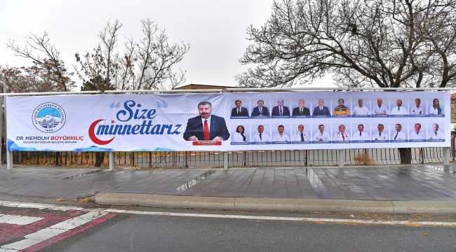 Kayseri Büyükşehir Belediyesi, yeni tip koronavirüs (Kovid-19) salgınında büyük bir fedakarlıkla görev yapan sağlık çalışanlarına vefa örneği göstererek, şehrin dört bir yanını "Size minnettarız" yazılı teşekkür billboardlarıyla donattı.Büyükşehir Belediyesinden yapılan yazılı açıklamaya göre, koronavirüs salgınında mücadelenin ve fedakarlığın timsali olarak görülen sağlık çalışanları ile süreci her anlamda çok iyi yöneten Sağlık Bakanı Fahrettin Koca için kentin dört bir yanındaki bilboardlara "Size minnettarız" yazıldı.Açıklamada görüşlerine yer verilen Büyükşehir Belediye Başkanı Memduh Büyükkılıç, salgında en önde mücadele veren sağlık çalışanlarına ve bu süreci yönetmek için fedakarca çalışan Sağlık Bakanı Koca'ya toplum olarak çok şey borçlu olduklarını ifade etti.Bilboardların asılmasının amacına değinen Büyükkılıç, şunları kaydetti:"Sürecin başından bu yana sağlık çalışanlarımızın gayretli özverisiyle halkın bilinçli tutum sergilemesi için sürekli bilgilendirmelerde, uyarılarda bulunan Sağlık Bakanımızın çabası her türlü takdirin üzerinde. Hem şahsım hem de şehrim adına kendilerine teşekkür ediyorum. İlk günden beri samimiyeti ve dirayetli duruşuyla Sağlık Bakanımız ile sağlık ordusunun süreci çok iyi yönettiklerini görüyoruz. O yüzden hem sağlık çalışanlarımıza hem de Sağlık Bakanımıza minnettarız. Sağlık çalışanlarımıza ne kadar destek versek azdır. Ülke olarak birlik ve beraberliğin en çok sağlanması gereken bu dönemde sağlıkçılarımıza çok şey borçluyuz. Rabbim sağlık çalışanlarımızın ve sürecin iyi yönetilmesi için mücadele veren Sağlık Bakanımızın yar ve yardımcısı olsun. Büyükşehir Belediyesi olarak sağlık çalışanlarımızın her zaman yanında olduk, bundan sonra da bu böyle devam edecek."Vatandaşlar da Büyükkılıç'ın gösterdiği vefa örneğinin kendilerini çok mutlu ettiğini belirtti.