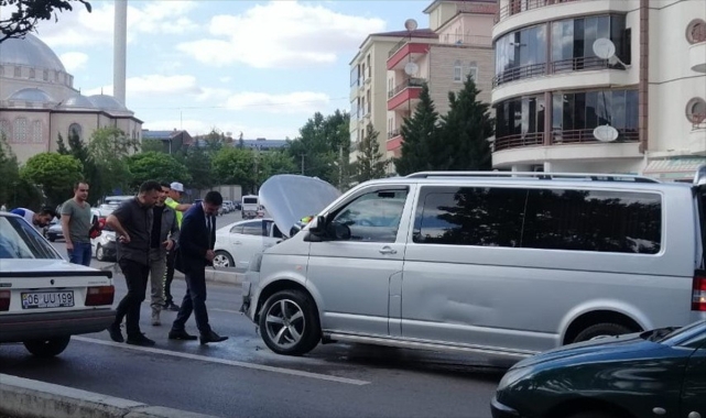 Kırıkkale'de seyir halindeyken alev alan minibüste hasar meydana geldi.Alınan bilgiye göre, Hayrullah Civil idaresindeki 07 AZH 649 plakalı minibüs, Alparslan Türkeş Bulvarında hareket halindeyken motor bölümünden duman çıkmaya başladı.Minibüsü durduran Civil, kaportayı açınca motor bölümünden alevlerin yükseldiğini fark etti. Bu sırada yoldan geçen Kırıkkale Valisi Bülent Tekbıyıkoğlu da makam aracını durdurarak olay yerine gitti.Vali Tekbıyıkoğlu'nun koruması da yardımıyla yanan minibüs kısa sürede söndürüldü.Yangın nedeniyle araçta ufak çaplı hasar meydana gelirken, yol da kısa süreliğine tek taraflı araç trafiğine kapatıldı.