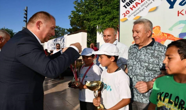 Kırıkkale Belediyesi, Gençlik ve Spor İl Müdürlüğü, Milli Eğitim Müdürlüğü, Türkiye Gençlik Vakfı (TÜGVA) ve Amatör Spor Kulüpler Federasyonunca (ASKF) düzenlenen "Yaza Merhaba Küçükler 2. Spor Şenliği" sona erdi.İl Milli Eğitim Müdürlüğünden yapılan açıklamaya göre, Büyük Şehir Parkı'nda düzenlenen törende, futbol, voleybol ve oryantiring branşlarında düzenlenen yarışmalarda dereceye giren okullara ödülleri verildi.Törende konuşan İl Milli Eğitim Müdürü Hayati Telefoncu, etkinlik sayesinde öğrencilerin spor alanında çok önemli kazanımlar elde ettiklerini söyledi.Öncelikle yoğun ilgi ve katılımdan dolayı duyduğu memnuniyeti dile getiren Telefoncu, şunları kaydetti:"Öğrencilerimizin yaz tatili sürecini daha verimli ve etkin değerlendirebilmeleri için Hayat Boyu Öğrenme Genel Müdürlüğümüzce okullarda yaz kursu hazırlandı ve kayıtları devam ediyor. Tüm kademelerdeki okullarımızda halk eğitim merkezleri aracılığıyla uygulanacak kurslarımızın programında temel spor becerileri, satranç, futbol, voleybol gibi spor etkinlikleri de yer almaktadır. Spor, çocuklarımızın daha sağlıklı, mutlu ve düzenli hayata sahip bireyler olmalarında en büyük etkenlerdendir."Halk oyunları gösterisi ve bazı etkinliklerin yer aldığı programa, Gençlik ve Spor İl Müdürü Hamza Güneş, Kırıkkale Belediyesi Kültür ve Sosyal İşler Müdürü Celaleddin Özel, ASKF Başkanı Sırrı Zengin, TÜGVA İl Temsilcisi Çağrı Parlak, öğrenciler ve veliler katıldı.