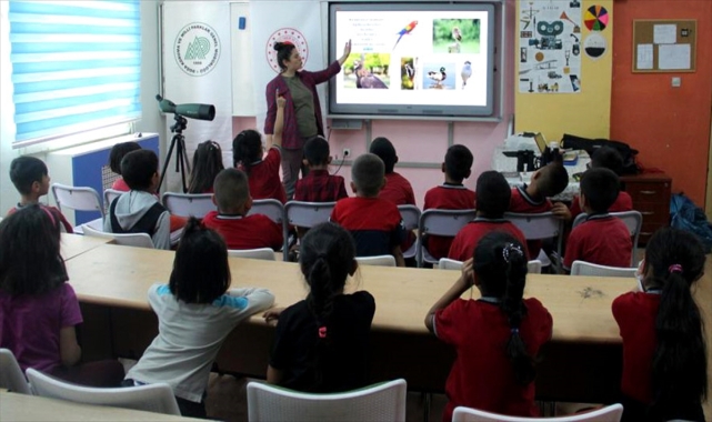 Özcan, daha sonra öğrencilere alanda teleskopla bozkır kartalı gözlemi yaptırdı.