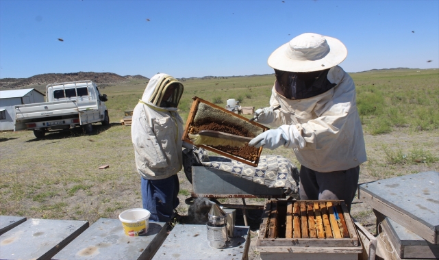 FAHRİ MİTHAT KORKUSUZ - Konya'nın Karapınar ilçesinde yaşayan 29 yıllık evli Yahya ve Nuran Bilici, kovanların bakımını ve bal sağımını birlikte yapıyor.Etkili olan erozyon nedeniyle "toprağın bittiği yer" ve "çöl" olarak nitelendirilen Konya'nın Karapınar ilçesinde arıcılık da önemli geçim kaynakları arasında yerini alıyor.Barındırdığı yaklaşık 240 çeşit bitki ve nektar ile arıcılık yapanların uğrak noktalarından olan Karapınar'da, 29 yıldır arıcılık yapan Bilici çifti, bal hasadına başladı.Yahya Bilici, AA muhabirine tarım, hayvancılık ve enerji şehri olarak bilinen Karapınar'ın, son yıllarda arı yetiştiriciliğiyle de adından söz ettirdiğini anlattı.Karapınar'daki arı ürünlerinin kaliteli olduğunu belirten Bilici, "İlçemiz, çöl olarak bilinmesine rağmen 240 çeşit bitki ile nektar bakımında çok zengin. Başka yerlerden gelen arı yetiştiricileri de var. Her 15 günde bir çeşitli bitkiler çiçek açıyor. Türkiye'de her bölgenin kendine özgü balı var. Marmara'da ayçiçeği, Ege'de çam balı, İç Anadolu'da da çiçek balı daha fazla tüketiliyor. Karapınar’da çeşit çeşit bitkiler çiçek açıyor. Geven, üzerlik ilçemizde arıların sevdiği bitkiler. Şu anda güvercin gözü açtı. Şimdi de ondan yararlanıyorlar. Arılar, dikenden bile yararlanıyor." diye konuştu.Bilici, son iki yıldır bal veriminden memnun olduklarını ifade etti. Karapınar çiçek balının çok lezzetli olduğunu dile getiren Bilici, "10 aydır binbir emekle kovanlarımızı yurdumuzun birçok yerine götürdük. Şimdi de emeklerimizin karşılığını almanın heyecanını yaşıyoruz. Ürünlerimizi İzmir, İstanbul, Adana, Ankara'ya gönderiyoruz." dedi.Bilici, bal hasadına ilişkin şunları söyledi: "Bal hasadı için uygun zaman peteğin büyük bir bölümü sırlandığı zamandır. Petek yeteri kadar sırlanmazsa balda su oranı fazla olur ve ekşime meydana gelir. Bal hasadında kovanın işi bitikten sonra kovanın ağzı kapatılmalıdır. Hasat sonrasında sonbahar ve kış ayları içinde besin bırakılmalıdır. Bal süzmek için peteklerdeki sırları, sır tarağı ya da sır bıçağı ile petekleri süzme makinesine yerleştiririz. Süzülen balları kaplarımıza yerleştiriyoruz."Eşine sürekli destek olan Nuran Bilici de "Makinede bal sağıyorum. Balcı eşi olmak güzel. İnsanlar eşlerine yardım etmeli ve destek olmalı. Yeri geldiğinde kovanlarla arılarla ilgileniyorum." ifadesini kullandı.