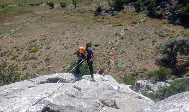 Konya'nın Derebucak ilçesinde kayalıklarda mahsur kalan iki keçiyi, İl Afet ve Acil Durum Müdürlüğü (AFAD) ekipleri kurtardı.Bağlık arazide hayvan otlatan bir besici, iki keçisinin sarp ve dik kayalıklarda mahsur kaldığını gördü.Kendi imkanlarıyla keçilerini bulunduğu yerden kurtaramayan besici, durumu AFAD'a bildirdi.Kısa sürede bölgeye gelen AFAD ekipleri, arazide keşif yaptıktan sonra halatlarla kayalıklara tırmanarak keçileri kurtardı.Ekipler, sağlık sorunu olmayan hayvanları sahibine teslim etti.