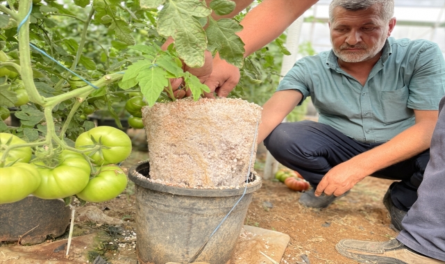ABDULLAH DOĞAN - Konya'nın Meram ilçesinde İsmail ve Abdurrahman Ölmez, 45 dekarlık serada topraksız tarım ve uzaktan erişimli mobil uygulamalarla personel masrafını ve giderlerini azaltıyor.Alakova Mahallesi'nde 12 yıl önce 5 dekarlık serada üretime başlayan Ölmez kardeşler, domates, biber çeşitleri, salatalık ile yeşillik üretimini artırmak için çalışma yaptı.İlaç ve gübre masraflarını asgari tutmak ve suyu etkin kullanmak için teknolojiden yararlanmayı hedefleyen kardeşler, 45 dekara çıkardıkları serada topraksız tarım uygulamasına geçti.Topraklı tarımdaki yabancı otla mücadele başta olmak üzere çeşitli hastalıklara karşı enerji harcamayan kardeşler, yüzde 80 daha az suyla yüksek rekolte elde ediyor.İlaç ve gübre kullanımını da düşüren uygulamayla yetişen ürünler, lezzet ve aromasıyla da tercih ediliyor.İnternet tabanlı mobil uygulamayla uzaktan bitkinin ihtiyacına göre su ve gübre verilmesini sağlayan teknolojiyi kullanan Ölmez kardeşler, İyi Tarım Uygulamaları sertifikası aldı.- "Rekoltede yüzde 50 fark var"İsmail Ölmez, AA muhabirine, yılda 300 ton domates üretimi yaptıklarını söyledi.Saksılarda perlitle topraksız tarım uygulaması yaptıklarını anlatan Ölmez, şöyle konuştu:"Tamamen doğal ve yerli üretim. Perlit, volkanik bir maden ve Kütahya'dan geliyor. Bunlarla topraksız tarım yapıyoruz. Bitkiyi topraktan gelen hastalıklardan ve yabancı ot tehdidinden koruyor. Dört yıldır bu şekilde üretim yapıyoruz. Gayet memnunuz. Su tüketimi çok çok az. Gübre kullanımı da az ve yabancı ot olmadığı için ilaç da çok az kullanıyoruz. Neredeyse organik üretim oluyor. Rekoltede yüzde 50 fark var."- Tek tuşla çiftçilik yapıyorlarÖlmez, serada teknolojiden de yararlandıklarını vurgulayarak, "Yerli bir yazılım firmasına otomasyon sistemi kurdurduk. Su ve gübrelemeyi bu sistemle uzaktan cep telefonu uygulamasıyla bağlanarak yapabiliyoruz. Bir tuşla sulamayı başlatıp, bir tuşla da bitkinin ihtiyacı kadar gübrelemeyi yapabiliyoruz. Saksılarda damlama sulama sistemi var. Hava ve iklimlendirme değerleri ve diğer işleri seraya gelmeden yapabiliyoruz. Böylelikle personel gideri de azalmış oluyor." diye konuştu.