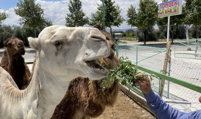 Kent merkezi Alakova Mahallesi'nde besicilik yapan 30 yaşındaki Tombeki, 9 yıl önce çiftliğine getirdiği deve yavrularını yetiştirmeye başladı.Bu zamana kadar 13 deve yetiştiren Tombeki, tesisin önünde demirle çevrili alanda eliyle beslediği hayvanlar, görenlerin de ilgisini çekiyor.Tombeki, AA muhabirine, kurbanlık bakmaya gelenlerin de ilgilendiği hayvanları hobi amaçlı beslediğini söyledi.Yaklaşık 9 yıl önce aldığı iki deve yavrusunu büyükbaş hayvanlarının olduğu tesise getirdiğini anlatan Tombeki, şöyle konuştu:"Develeri keyifle besliyorum. Mübarek hayvan, onları seviyorum. Çok ilgi çekiyor. Tesisimiz işlek caddeye bakıyor. Develer buradan geçen insanların dikkatini çekiyor. Arabalar duruyor, insanlar geliyor bakıyorlar ve fotoğraf çekiyorlar. Sürekli burada tutmuyorum özel ve rahat bir yeri var. Bakım ve beslemesiyle kendim ilgileniyorum. Yoncayı, otu ve yayılımı çok seviyorlar. Bu tesisin etrafındaki otlardan yolup veriyorum. Bundan mutluluk duyuyorum. Kaba yem de tüketiyorlar. Şu anda 3 devemiz var."