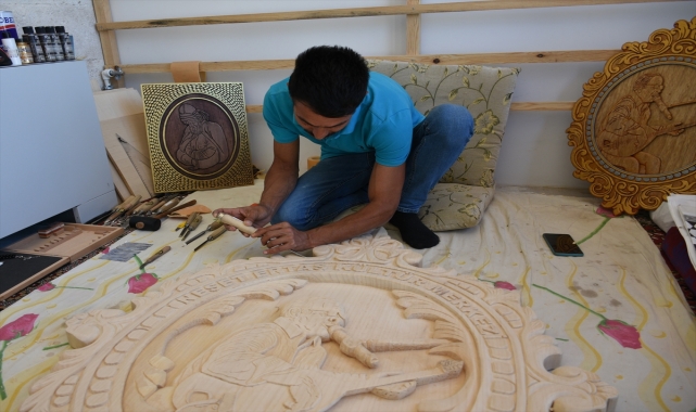 Kırşehir'in Çiçekdağı ilçesine bağlı köyünde bir çoban bıçağıyla başladığı ahşap el oymacılığı sanatını geliştiren 43 yaşındaki Hakan Öztürk, kent merkezinde 800 yıllık Ahi geleneğinin yaşatıldığı zanaatkarlar çarşısında mesleğini sürdürüyor.İlçeye bağlı Büyükteflek köyünde ilkokul öğretmeninin yönlendirmesiyle bu yöndeki yeteneğini fark eden Öztürk, meslek lisesi yıllarında hobi olarak başladığı ahşap el oymacılığında kendini geliştirdi.Yaklaşık 17 yıl önce bu sanata başlayan Öztürk, hiçbir eğitim almadığı halde tokmak, çoban bıçağı ve iskarpela ile yıllanmış ağaçlardan Fatih Sultan Mehmet, Cumhurbaşkanı Recep Tayyip Erdoğan, Neşet Ertaş, Ferdi Tayfur ve Selimiye Camisi'nin tabloları ile kulüp armaları ve çeşitli figürler yapıyor.Sosyal medya hesabından paylaştığı eserlerini satarak geçimini sağlamaya çalışan Öztürk'e, Ticaret Bakanlığının desteğiyle Kırşehir Belediyesi tarafından yapılan Ahi Külliyesi bünyesindeki zanaatkarlar çarşısında dükkan verildi.Hakan Öztürk, AA muhabirine, 800 yıllık Ahi esnafı geleneğinin yaşatıldığı çarşıda ahşap el oymacılığı yaptığını belirterek, sanatına sahip çıkan devlet görevlilerine teşekkür etti.Kendini daha da geliştirerek ustalar yetiştirmeyi amaçladığını vurgulayan Öztürk, şöyle konuştu:"Köyümde 5-6 yıl evimin bir odasını sanat atölyesine çevirerek çalışmalarıma devam ettim. Hiç eğitim ve kurs almadım. Allah vergisi. Yani çırak da benim, usta da. Allah razı olsun belediyemizden. Bana burayı temin ettiler. Bismillah dedik, burada başladık. Devlet büyüklerimizden destek bekliyorum. Unutulmaya yüz tutmuş bu mesleği verilecek desteklerle geleceğe taşımak istiyorum."Öztürk, her türlü ahşabı sanat eserine çevirebildiğini anlatarak, "Elektronik kesici aletler kullanmıyorum. En basit eser 2 haftada en zorları 5-6 ayda tamamlanıyor." dedi.Her yıl eylülde düzenlenen Ahilik Haftası kutlamaları için de çalışmalar yaptığını dile getiren Öztürk, Kırşehir'deki programa katılması halinde Cumhurbaşkanı Recep Tayyip Erdoğan'a tablosunu hediye etmeyi istediğini sözlerine ekledi.
