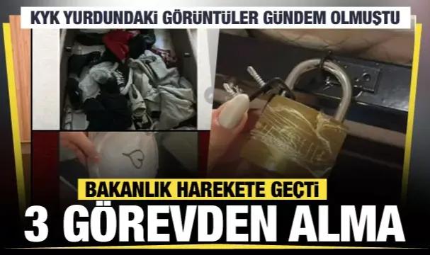 KYK yurdundaki olayla ilgili yeni gelişme: 2 yurt müdürü görevden alındıİstanbul Atatürk Öğrenci Yurdu’na ilişkin basına yansıyan olaylarla ilgili başlatılan soruşturma kapsamında, Merkezefendi ve Atatürk Öğrenci Yurtlarında görevli iki yurt müdürü ile bir müdür yardımcısı görevden alındı.İstanbul Cevizlibağ KYK Atatürk Kız Yurdu’na yaz tatili sonrası dönen 7 bin öğrenci, yurda döndüğünde büyük bir şok yaşadı. Öğrenciler dolaplarındaki kilitlerin kırıldığını fark etti. Valizler tamamen açılarak karıştırıldığı, çamaşır tellerinden kişisel kıyafetlere kadar pek çok eşyanın çalındığını gördü. Arkadaşlarının eşyalarını başka odalarda bulan öğrenciler, bazı eşyalarını ise hiç bulamadı.Sosyal medyada paylaşılan görüntüler sonrası Gençlik ve Spor Bakanlığı harekete geçti.