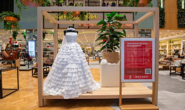 Timurlenk tarafından tasarlanan gelinliği sergileyerek salgının insanlara öğrettiklerini hatırlatan Boyner, aynı zamanda Lokman Hekim Sağlık Vakfı aracılığıyla sağlık bilimi öğrencilerinin eğitimine destek oluyor ve müşterilerini iyiliği çoğaltmaya davet ediyor. İpliklerden iç astarına kadar atık ve ileri dönüştürülmüş malzemelerle hazırlanan gelinlik, 21 Ağustos Pazar gününe kadar Boyner Metropol AVM’de ziyaretçilerini bekliyor.